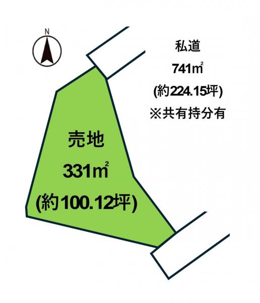 権利:所有権 敷地面積:331m2(100.12坪) 私道負担:私道負担有 741m2 持分:5252/74061 地目(登記簿):山林 接面道路: |